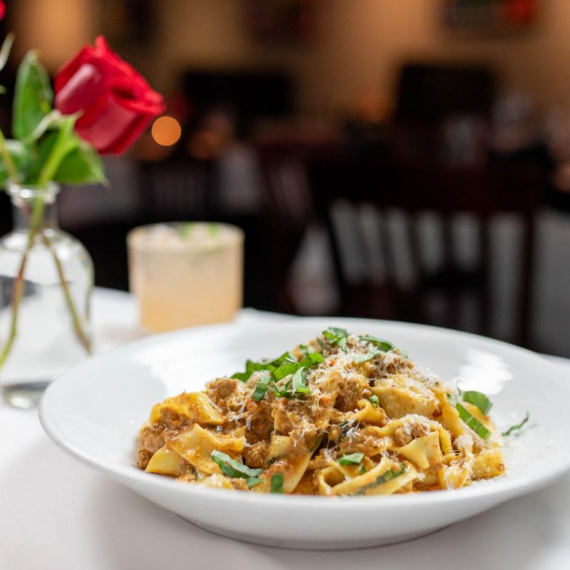 Fresh pasta with bolognese and Parmigiano-Reggiano