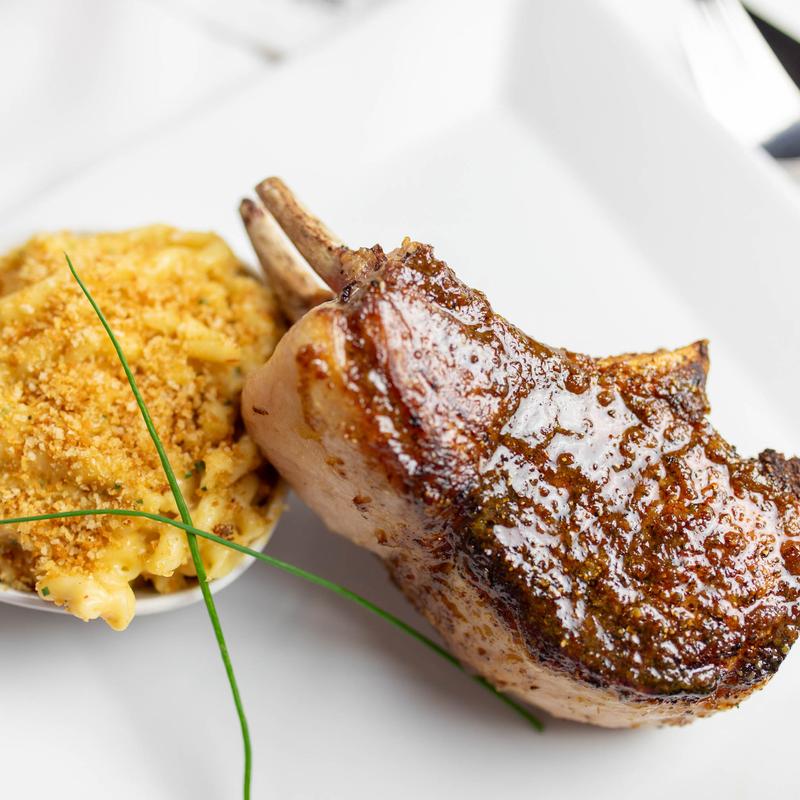 Chipotle-cheddar mac & cheese, bourbon whole grain mustard glaze